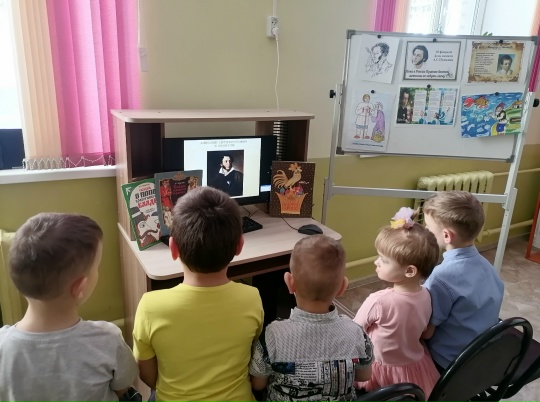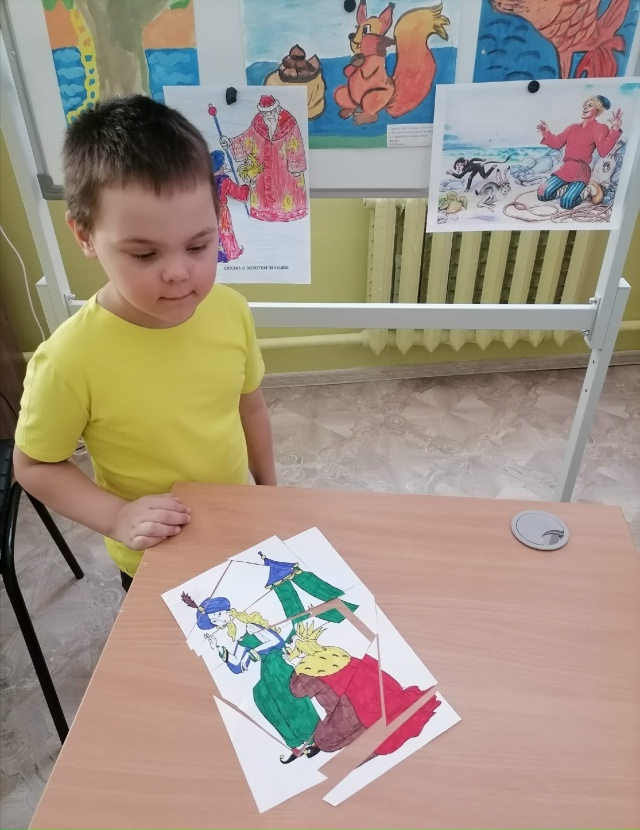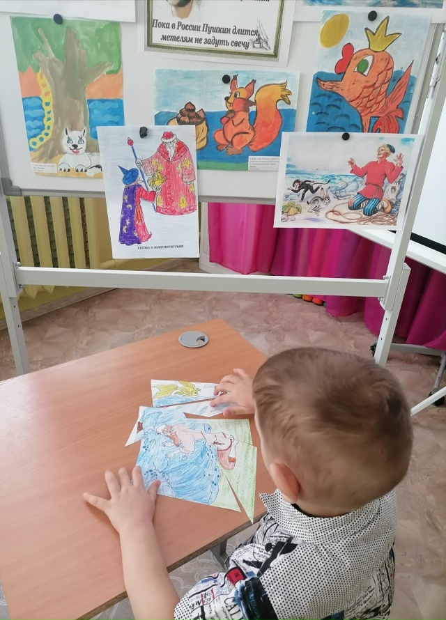 Дети слушали стихи, отрывки сказок, участвовали в беседе, смотрели мультики по мотивам сказок, разгадывали загадки, собирали пазлы. Ребята с удовольствием разглядывали иллюстрации к прочитанным сказкам, а так же портрет поэта.