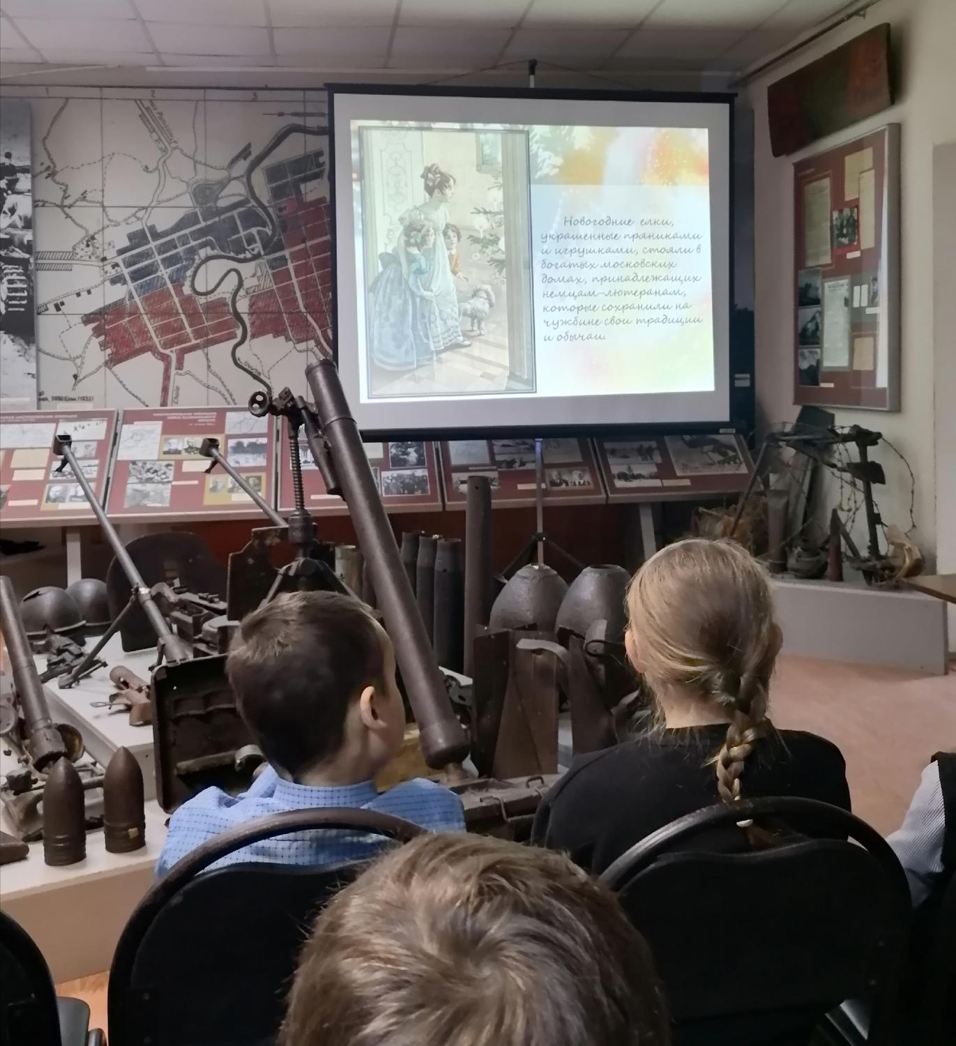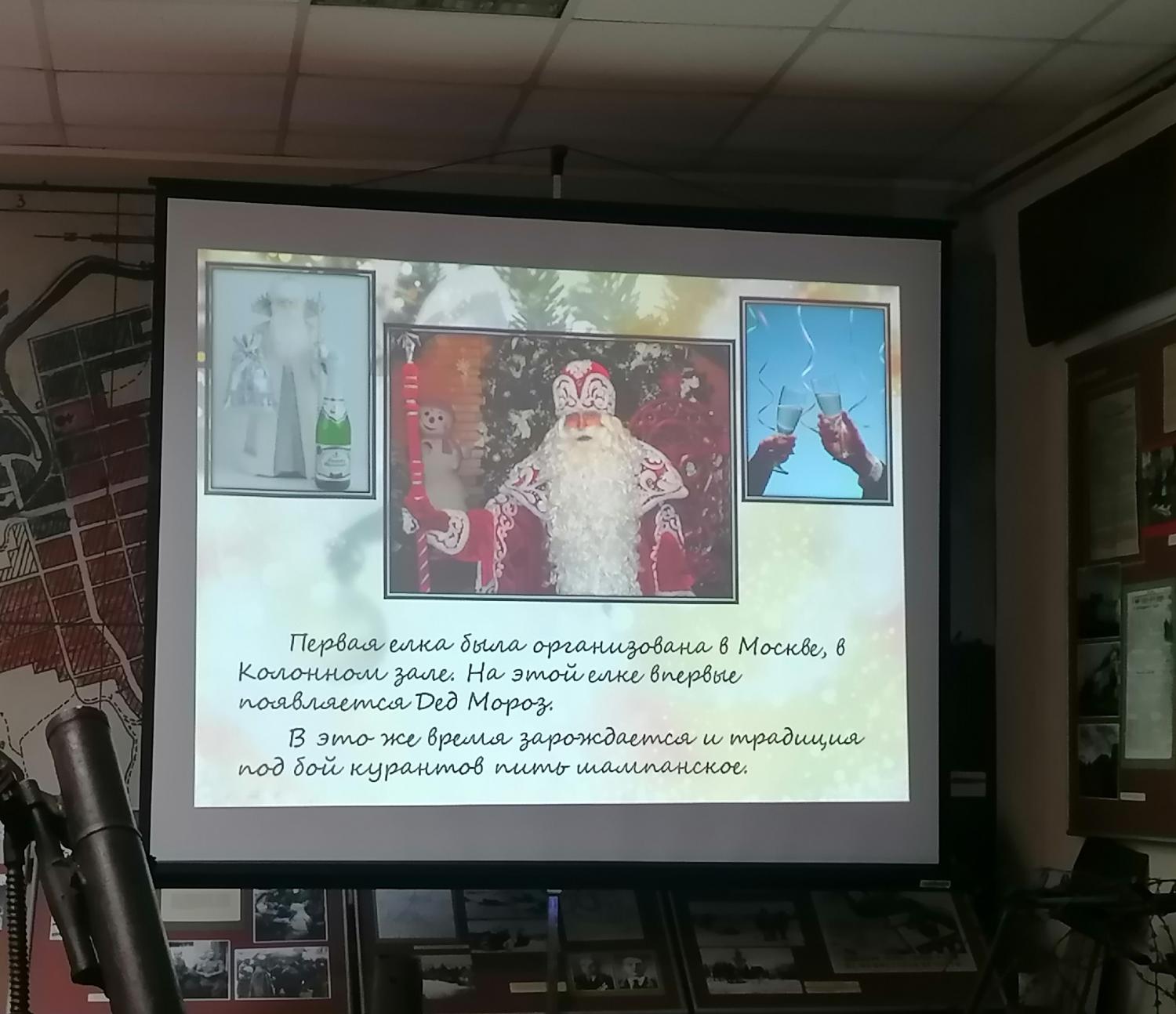 На зимних каникулах воспитанники семейного центра посетили Бельский краеведческий музей. Для детей сотрудники музея провели час полезного общения «Ёлка: современность и история». Из слайд-презентации ребята узнали, что в Россию новогодняя традиция пришла в канун 1700 года, во время правления Петра I. Было решено отмечать Новый год 1 января, лавки и дома украшать ёлочными и можжевеловыми ветвями. Первую публичную ёлку установили в Санкт-Петербурге лишь в 1852 году. В разные времена ёлки наряжали по-разному: сначала фруктами, живыми и искусственными цветами, позже украшения стали сказочными: позолоченные шишки, сладости, орехи и горящие свечи. Вскоре добавились игрушки, сделанные своими руками: мастерили их из воска, картона, ваты и фольги.