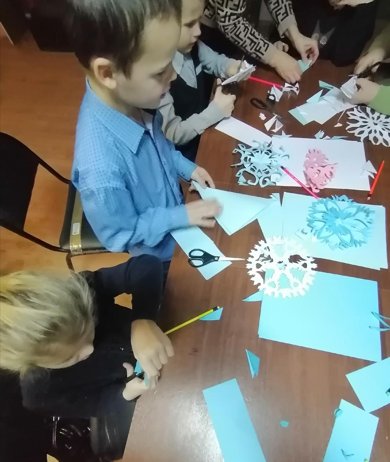 Красивые и интересные снежинки были изготовлены детьми с помощью листов бумаги и ножниц. Дети аккуратно и терпеливо вырезали разнообразные снежинки, активно проявляли фантазию и придумывали свои узоры, с интересом учились тому, как из обычной бумаги, своими руками, создать новогоднее настроение. На мастер-классе все присутствующие смогли зарядиться новогодним настроением и весело провести время. Снежинки получились у всех на славу!