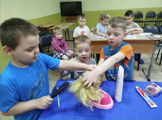 Затем ребята повторили основные правила гигиены: обязательность утреннего и вечернего туалета, регулярная чистка зубов, своевременная смена нательного белья и одежды, поддержание порядка в шкафчике и спальне.