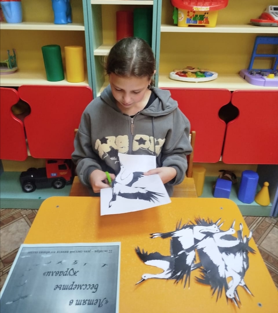В этот день, воспитатель рассказала ребятам семейного центра об истории этого дня, о народном поэте Дагестана – Расуле Гамзатове, который инициировал проведение праздника и создал стихотворение «Журавли», ставшее впоследствии гимном памяти и лейтмотивом праздника. Также об истории маленькой японской девочки Садако, больной лейкемией, которая, чтобы выжить, мастерила бумажных журавликов.