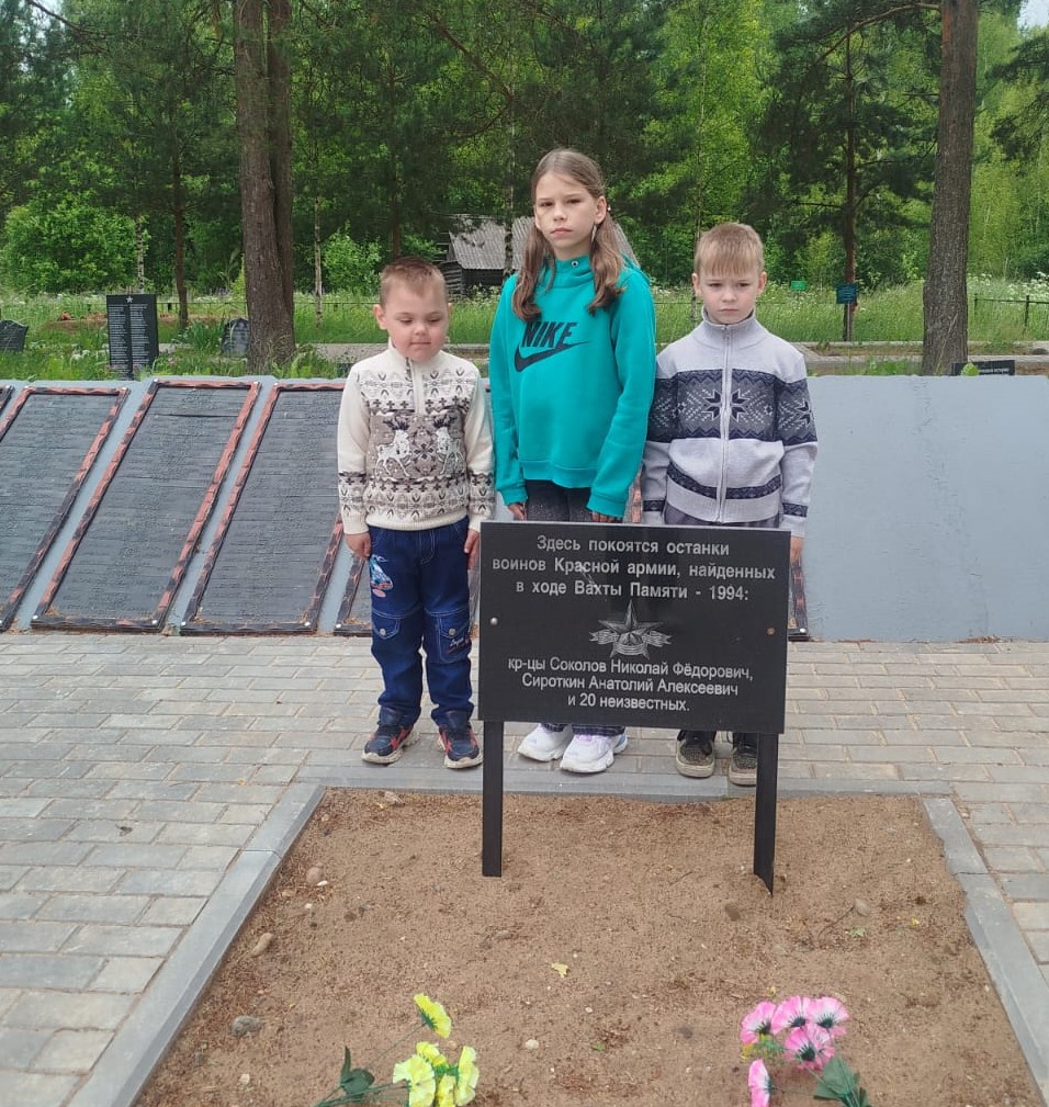 Также для воспитанников семейного центра была организована экскурсия к памятным местам нашего округа. Дети посетили: воинские захоронения на Петропавловском кладбище и воинское захоронение в деревне Демяхи Бельского МО. Здесь дети узнали из рассказа воспитателя о героях, защищавших нашу Родину. Во время экскурсии детям были поданы объяснения о том, что такое война, как важно помнить историю, и как каждый из нас может почтить память героев. В конце экскурсии все вместе почтили память павших героев минутой молчания.