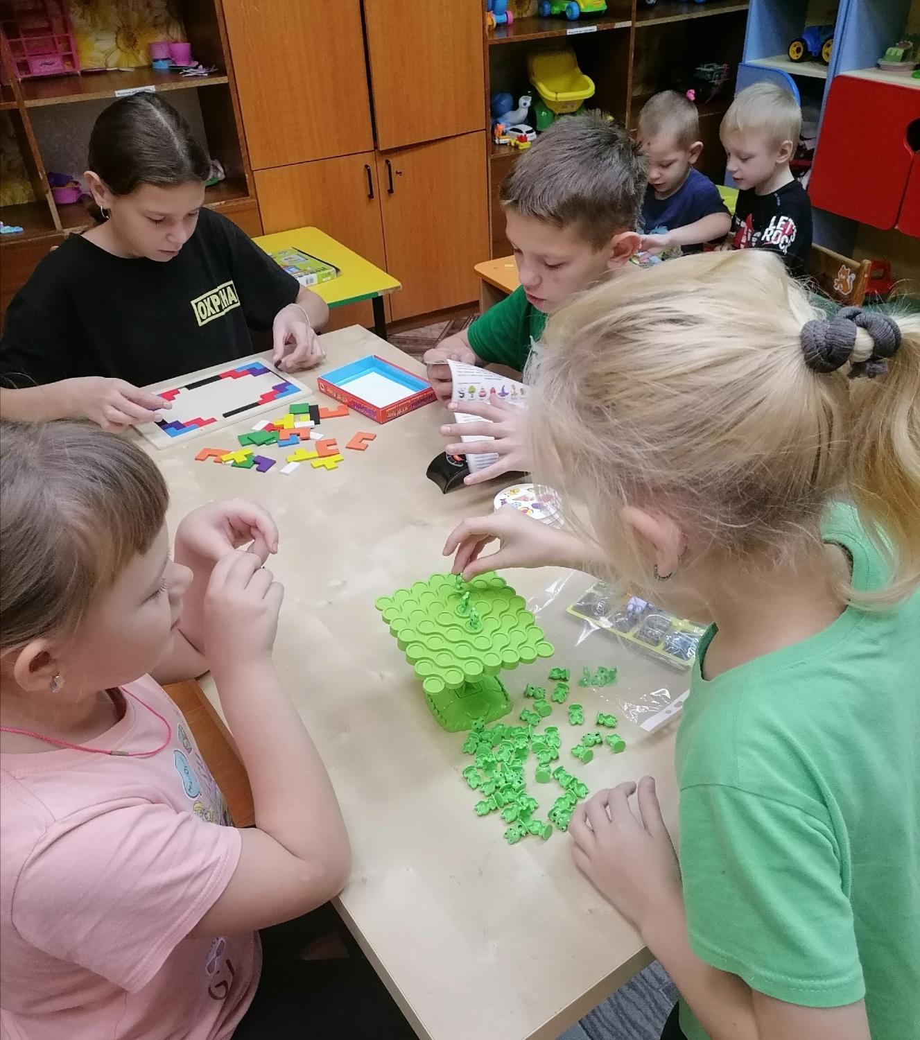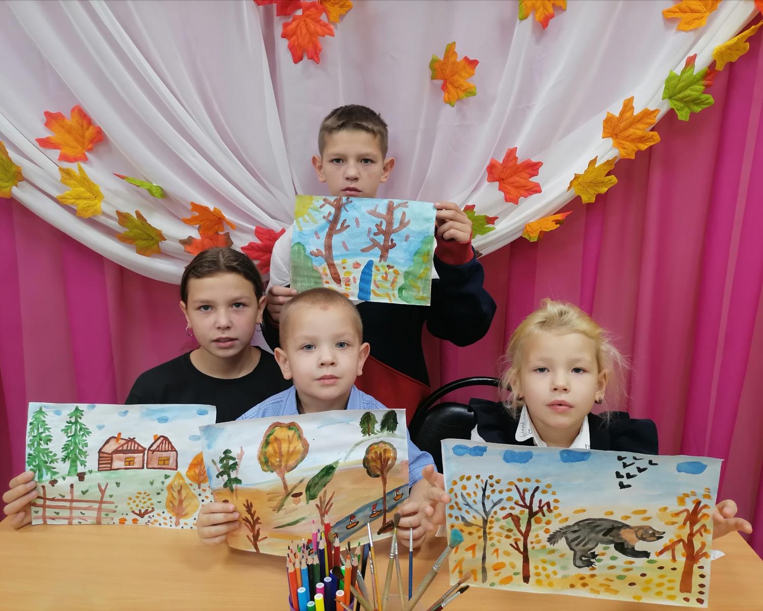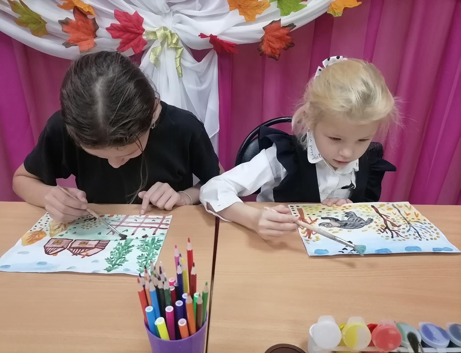 Дети с большим удовольствием играли в дублики, в игру на баланс, собирали деревянный тетрис, магнитную мозаику и конструктор «Лего», решали ребусы и головоломки. А ещё дети рисовали картины на осеннюю тематику. Получилось очень красиво.