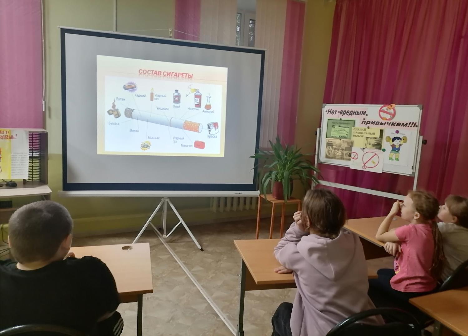 Ребята познакомились с историей происхождения табакокурения, поговорили о вредных и опасных для жизни веществах, которые входят в состав сигарет, о болезнях, возникающих вследствие продолжительного курения.