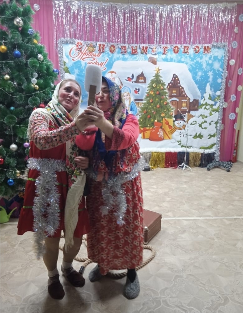 Дед Мороз не забыл и про Марфушеньку и Дуняшеньку. Также вручил им подарки.