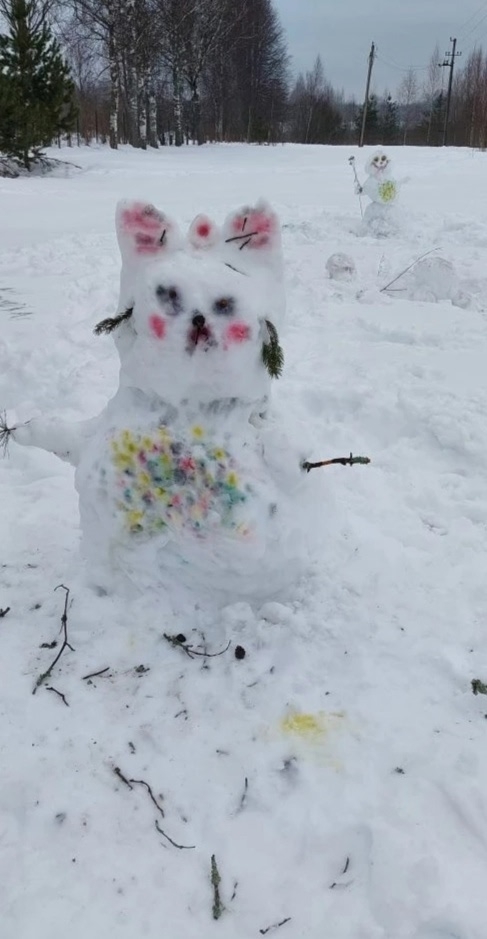 Снег был сырой и детям ничего не мешало слепить очень необычных снеговиков. От такого занятия они не только получили положительный эмоциональный заряд, но и укрепили своё здоровье.