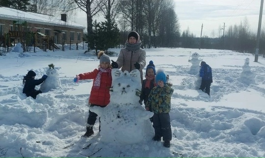 На территории семейного центра было проведено спортивное развлечение "Лепим мы снеговика".