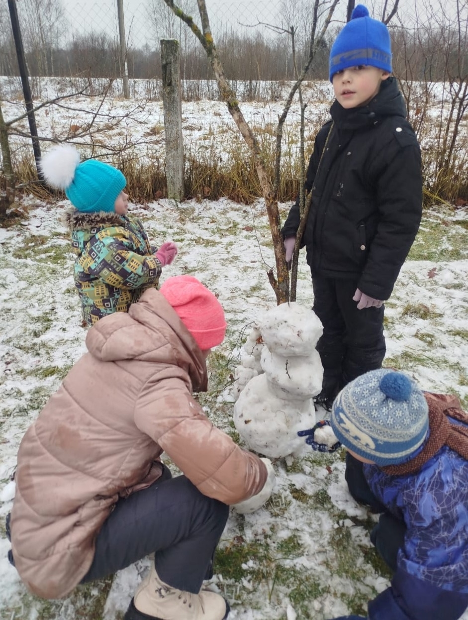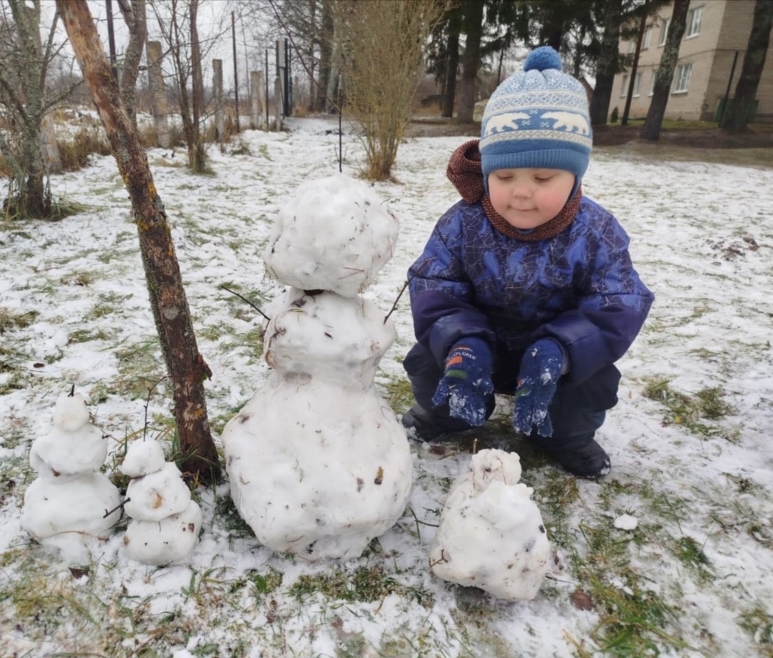 Дети были в восторге от выпавшего снега. С большим удовольствием ребята строили маленьких снеговичков, собирали снег в кучки для поделок. Дети были настолько впячатлены выпавшим снегом ,что радости не было предела!