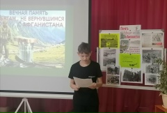 Накануне 37-й годовщины вывода советских войск из дружественной республики Афганистан, в семейном центре состоялось традиционное памятное мероприятие. Целью данного мероприятие является воспитание чувства патриотизма, любви к Родине, уважения к прошлому страны, братского отношения к другим народам.