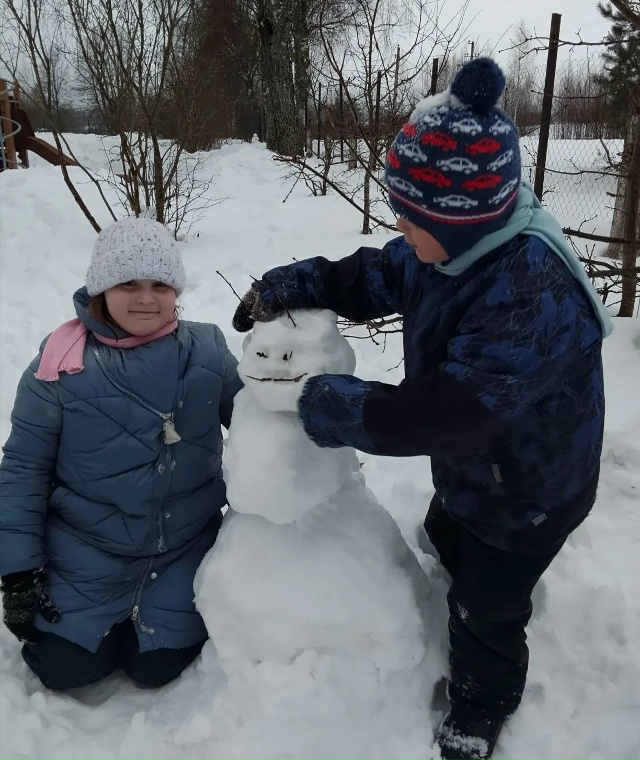 В этом году зима порадовала нас обильным снегом. Погода предоставила детям семейного центра отличную возможность для лепки снеговика.